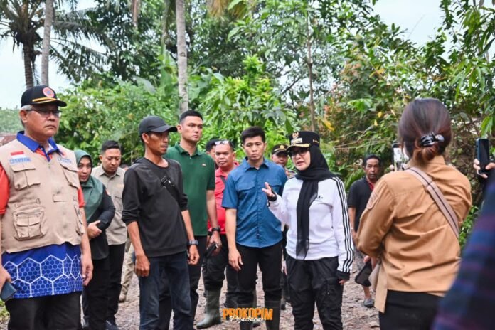Hal ini Bupati sampaikan saat meninjau langsung lokasi terjadinya banjir di Desa Sukajaya Lempasing, Kecamatan Teluk Pandan, Sabtu (30/8/2025).
