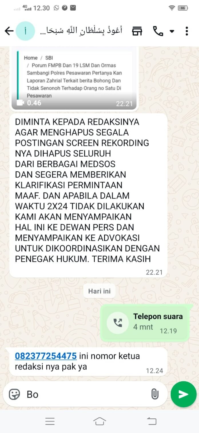 yang kini kasusnya masih dalam proses, dalam chatnya kepada pimred media satu detik asia, Ia menyuruh membuktikan, pelapor merasa yakin perkaranya akan di hentikan ( SP3) media hanya mengawal pemberitaan bukan melaporkan, seharusnya yang membutuhkan itu pelapor bukan media yang mewartakan.