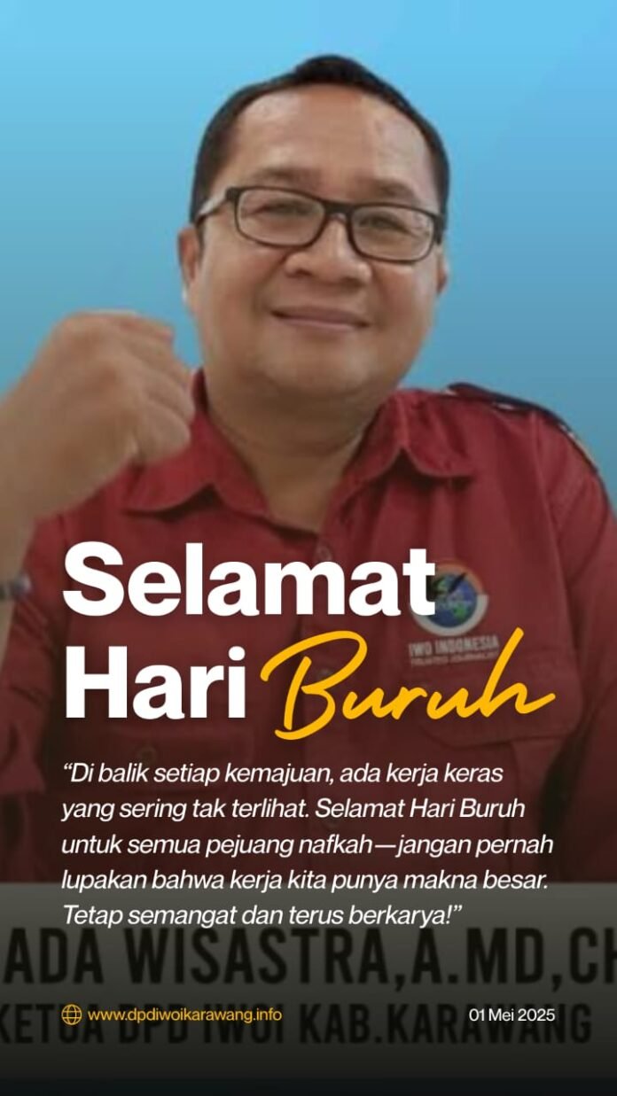 KARAWANG | TERASTV.LIVE | Ketua Ikatan Wartawan Online Indonesia (IWOI) Dewan Pimpinan Daerah (DPD) Karawang, Syuhada Wisastra, menyampaikan ucapan Selamat Hari Buruh Internasional kepada seluruh pekerja dan buruh di Indonesia, khususnya di Kabupaten Karawang. Kamis 01 Mei 2025.