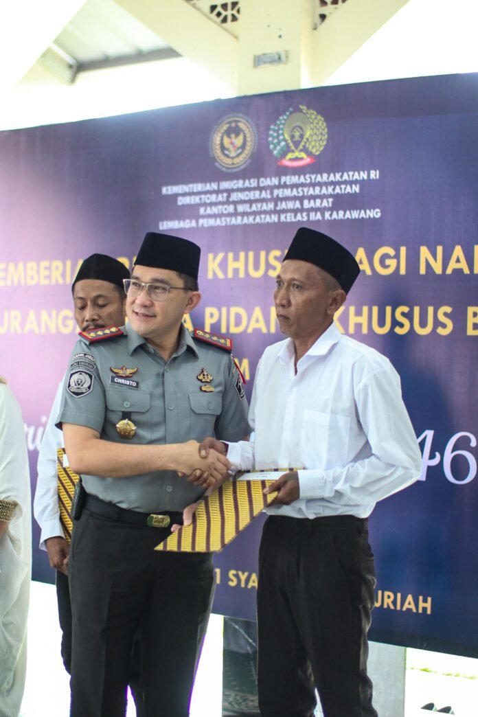 Dimoment Idul Fitri 1446 Hijriyah kali ini, Lapas Karawang berikan Remisi Khusus (RK) kepada 915 Warga Binaan yang beragama Islam.