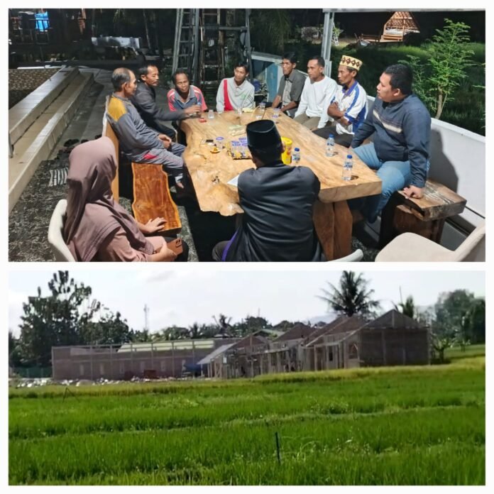 Dihadapan aparatur Desa Sukaraja, Kecamatan Gedong Tataan, Kabupaten Pesawaran, para petani mengeluarkan keluh kesahnya terkait dampak dari penimbunan sawah aktif tanpa izin.