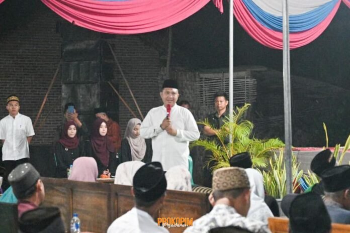 Acara pengajian tersebut berlangsung khidmat dengan lantunan shalawat, doa bersama, serta antusiasme masyarakat yang mengikuti hingga akhir kegiatan.(Sumarah)